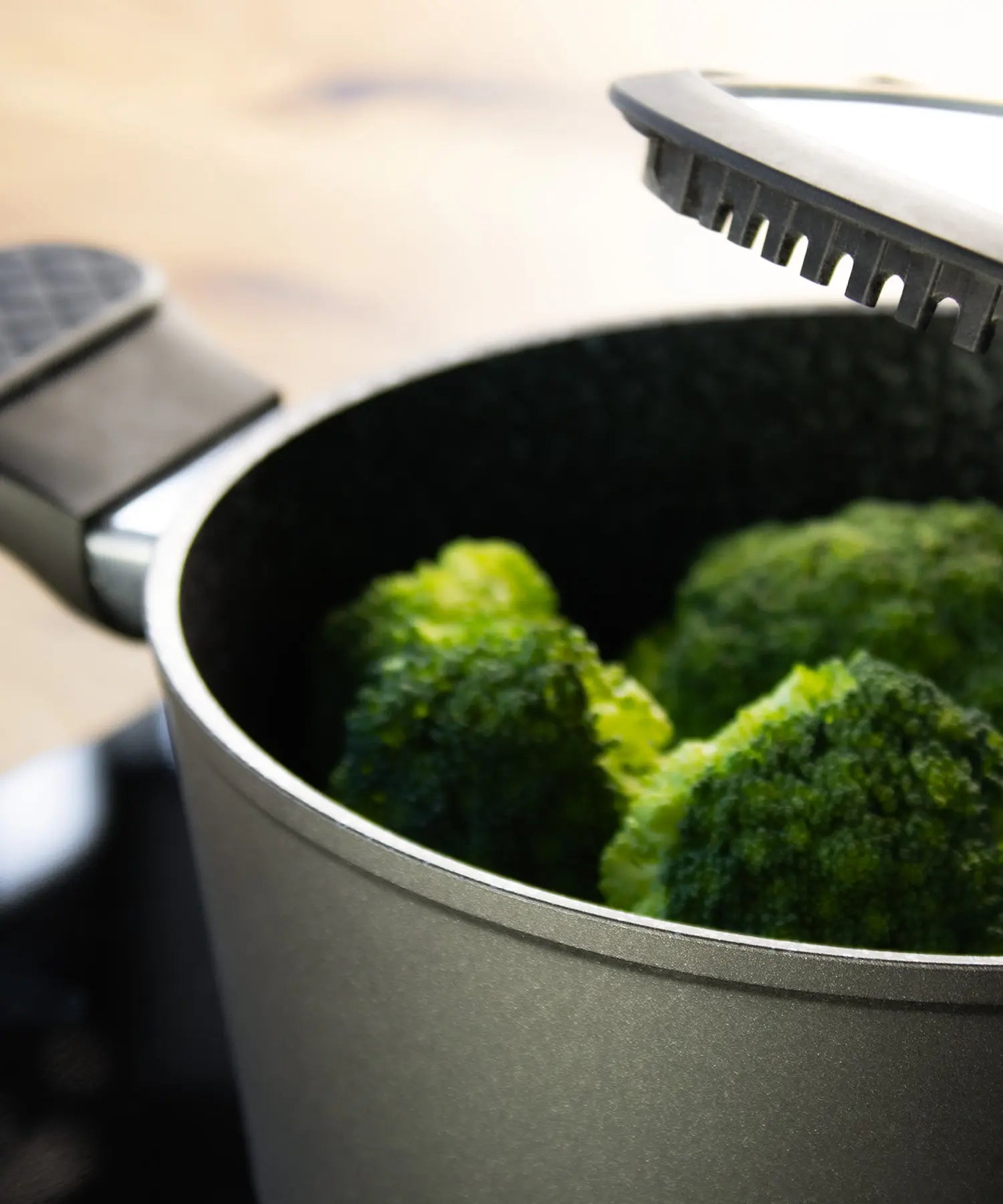 Ob Suppen, Saucen oder Schmorgerichte. Mit den FIVI Töpfen gelingt jedes Rezept mühelos. Die bewährte STONELINE® Antihaftbeschichtung verhindert Anhaften und erleichtert die Pflege deutlich. Gleichzeitig sorgt das aus 100 Prozent recyceltem Aluminium gefertigte Topfmaterial für eine gleichmäßige Wärmeverteilung. Das Ergebnis sind aromatische Gerichte und entspanntes Kochen mit gutem Gewissen.